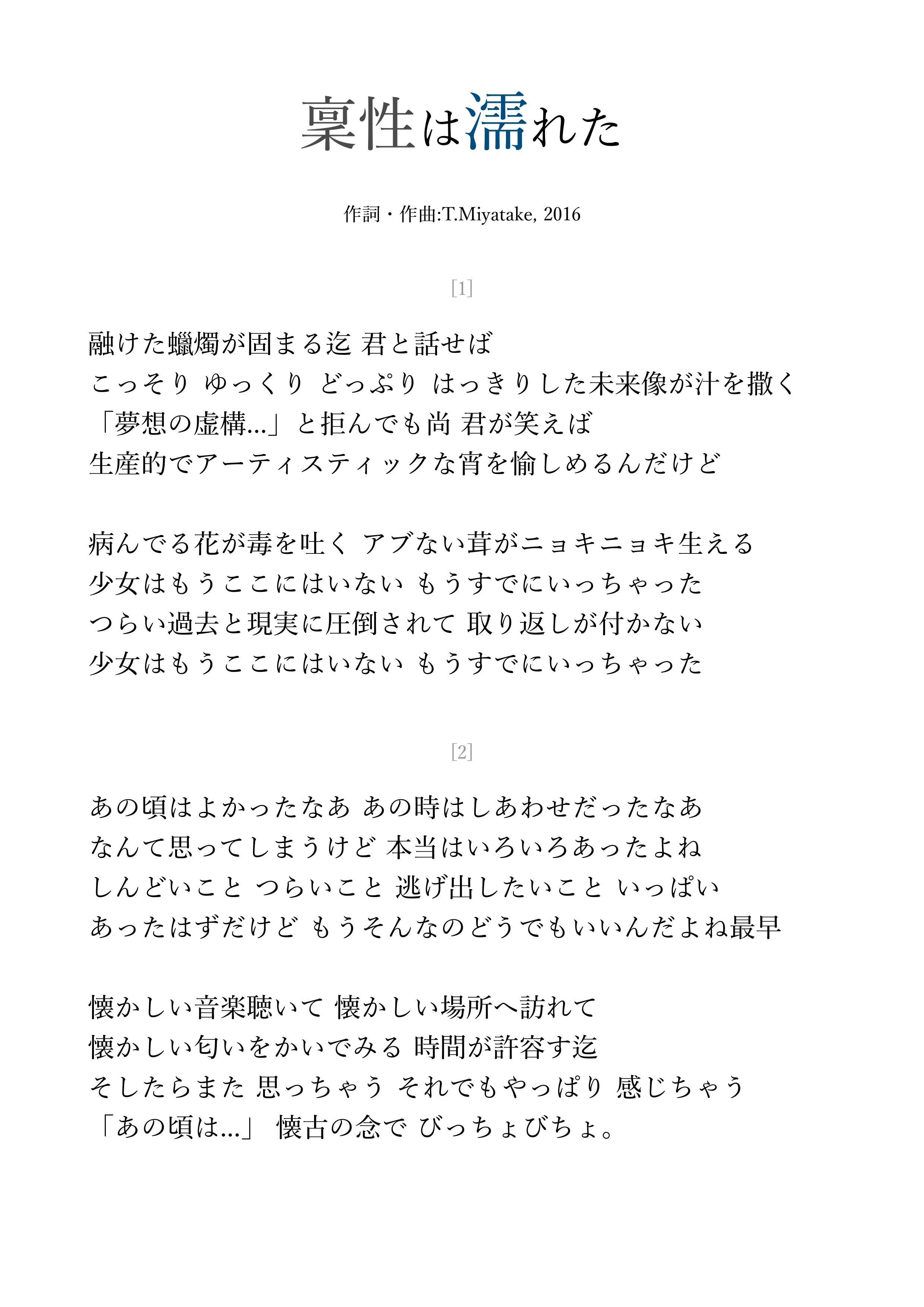Words&Music : T.Miyatake, 2016;